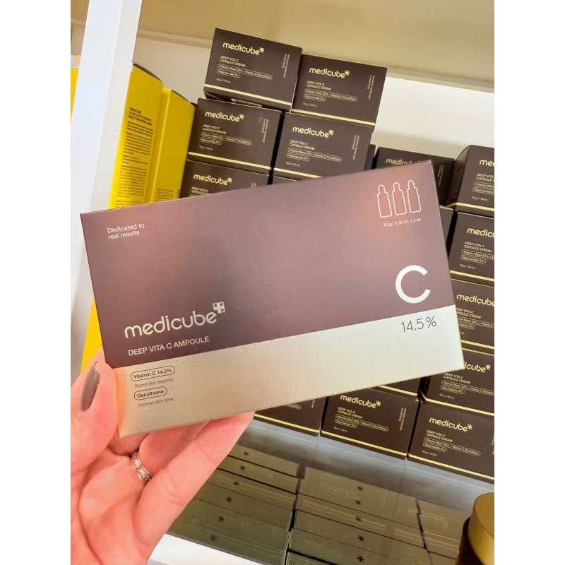 MEDICUBE VIT C é uma ampola concentrada que serve para clarear manchas e uniformizar o tom da pele, iluminar e revitalizar a pel