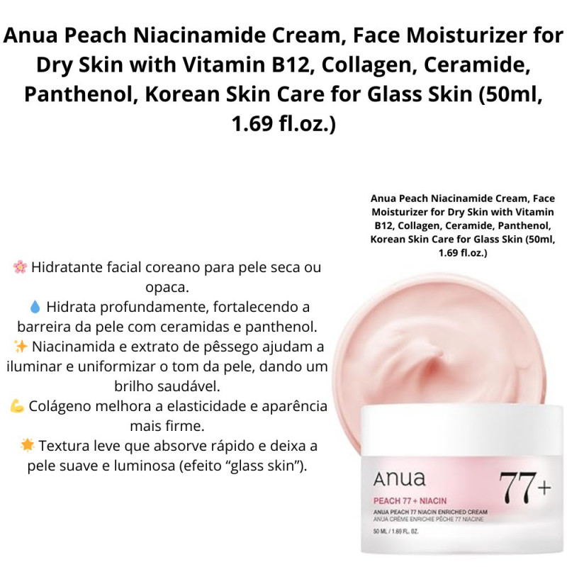 Anua Peach Niacinamide Cream, Face Moisturizer for Dry Skin with Vitamin B12, Collagen, Ceramide, Panthenol, Korean Skin Care fo