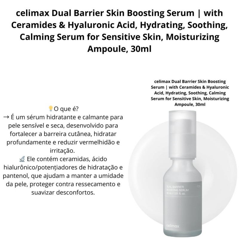 celimax Dual Barrier Skin Boosting Serum | with Ceramides & Hyaluronic Acid, Hydrating, Soothing, Calming Serum for Sensitive Sk