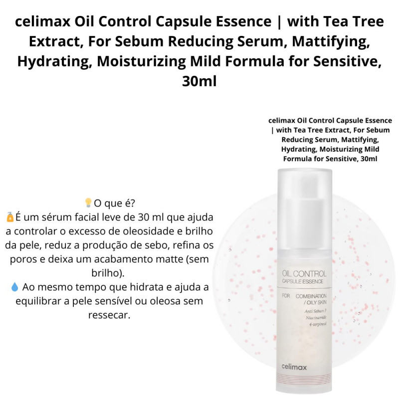 celimax Oil Control Capsule Essence | with Tea Tree Extract, For Sebum Reducing Serum, Mattifying, Hydrating, Moisturizing Mild