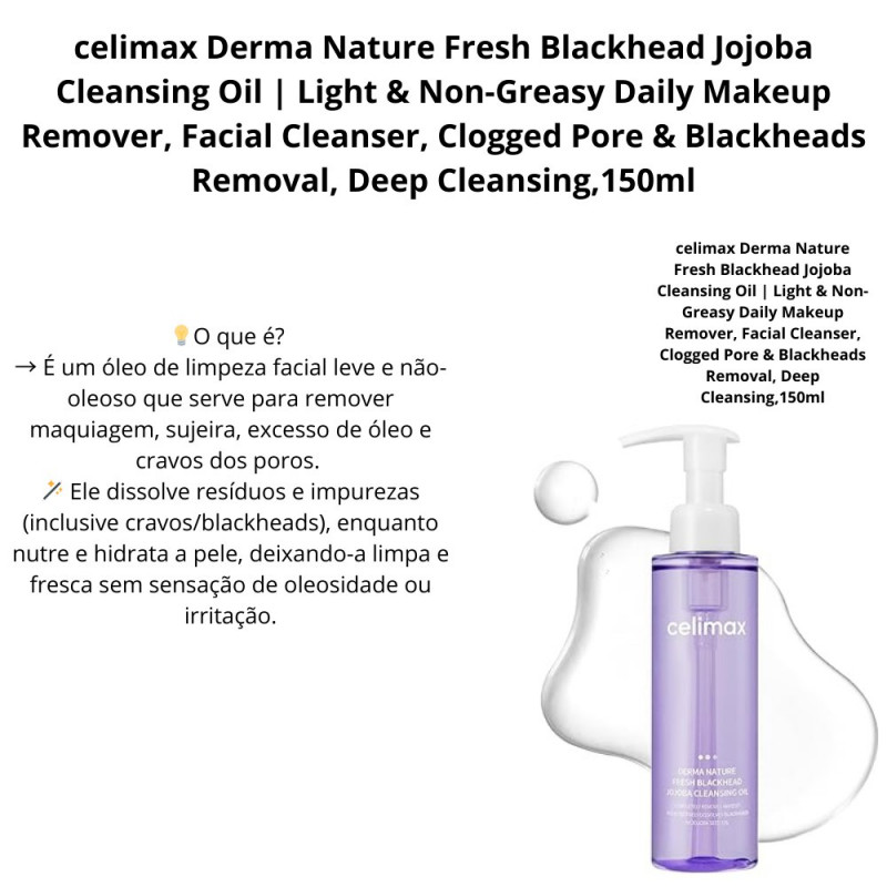 celimax Derma Nature Fresh Blackhead Jojoba Cleansing Oil | Light & Non-Greasy Daily Makeup Remover, Facial Cleanser, Clogged Po