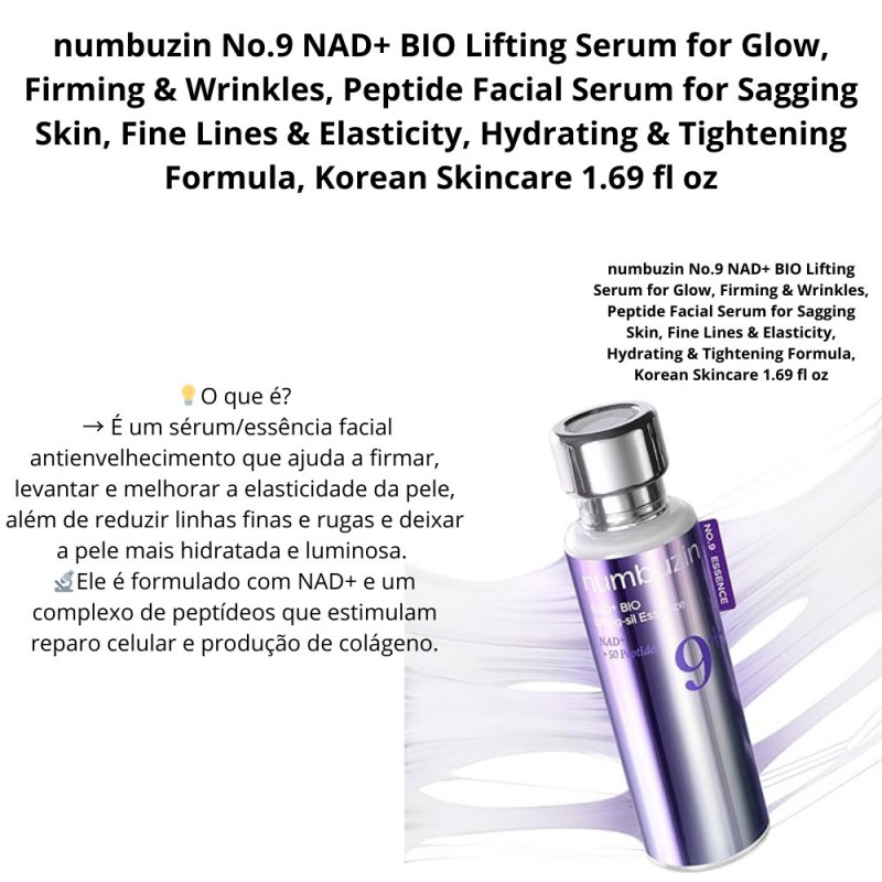 numbuzin No.9 NAD+ BIO Lifting Serum for Glow, Firming & Wrinkles, Peptide Facial Serum for Sagging Skin, Fine Lines & Elasticit
