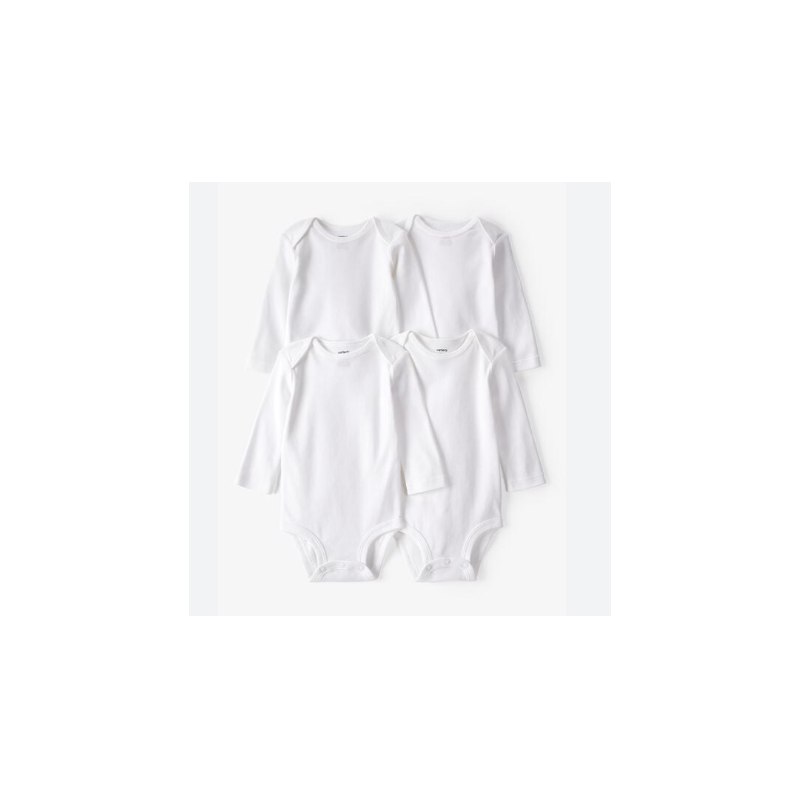 Carters - Kit 4 Body Infantil Branco sem Estampa Manga Longa - Tamanho 3 Meses