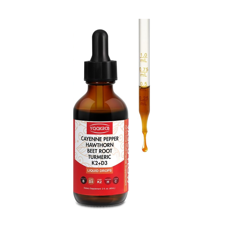 Cayenne Pepper Hawthorn Beet Root Turmeric Vitamin K2+D3 Liquid Drops - 60ML - Exp 02/27