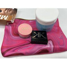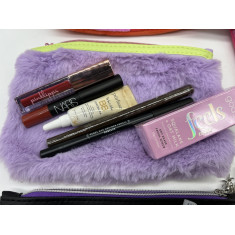 Contém 5 Necessaire com produtos variados, skincare, makeup, hair.