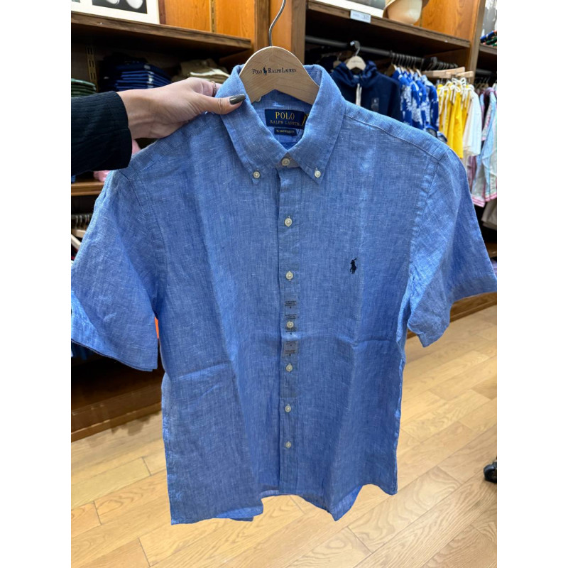camisa de linho manga curta untucked fit