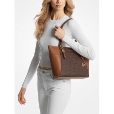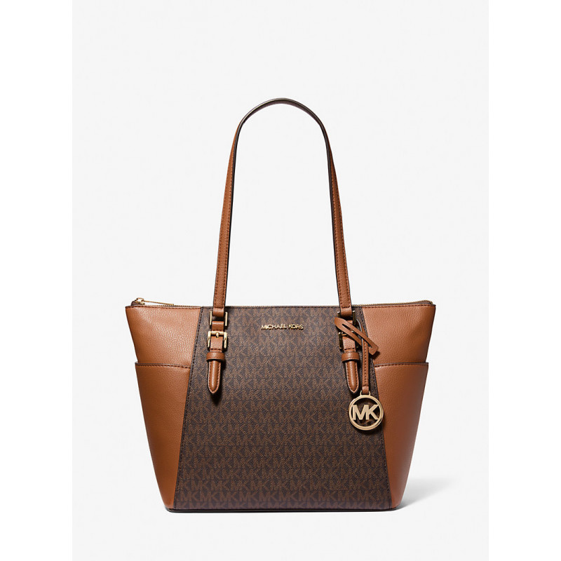 Michael Kors - Charlotte Large Logo and Leather Top-Zip Tote Bag - Brown